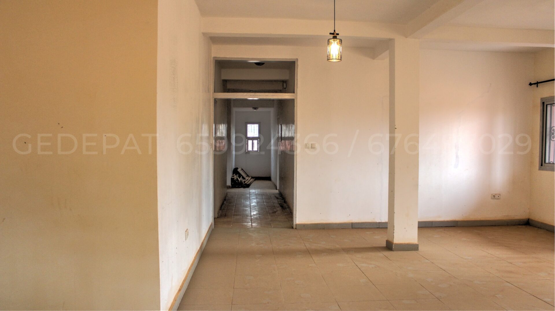 Grand Appartement de 3 chambres avec placards, 2 salles de bain avec chauffe-eau, Salon large, cuisine large, balcon, véranda avec une grande cour dans la clôture.Situés à proximité du stade Olembé (gare routière); facilement accessible, Ces appartements sont dans une clôture en bordure de route secondaire, à environ 300 mètres de la route principale, avec un gardien résident sur place et disponible 24h/24.L’alimentation en eau est faite par un forage bien aménagé et l’alimentation en énergie électrique est assurée par un compteur ENEO prépayé.Secteur recherché, environnement privé, calme et paisible avec une aire de vie généreuse grâce à sa fenestration